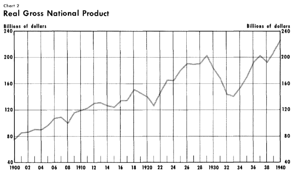 Some suggested that the Depression had been a one-time freak accident, and that since 1933 the Recovery had been well underway. The shortfall in demand had been temporary – so yes, it had been acceptable for the government to step in and do what was necessary to get the economy going again, but now that the storm had passed there was no longer any justification for new programs, and certainly not a permanent aggregate demand planning process. They looked at Wallace’s data and failed to see an ever widening gap.